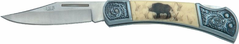 COLTELLO TASCABILE CON MANICO BIANCO DECORATO CINGHIALE TESTINA INOX LAMA 8 CM – JKR114