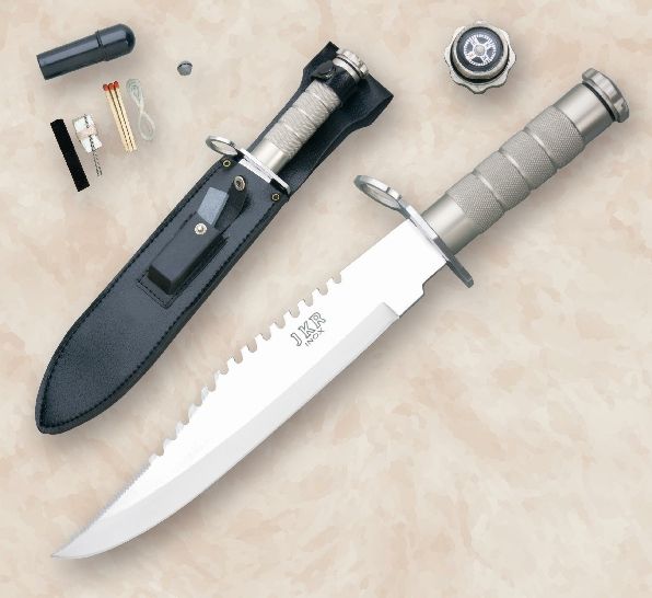 COLTELLO MODELLO RAMBO CON KIT SOPRAVVIVENZA NEL MANICO + BUSSOLA LAMA 25 CM – JKR33429,00 €