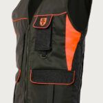 Gilet in color verde, estremamente protettivo grazie al tessuto tecnico che ricopre quasi per intero la superficie. Resistente ai rovi e impermeabile. Taschino porta GPS lato cuore. Tasconi frontali e tasche nascoste con apertura verticale.