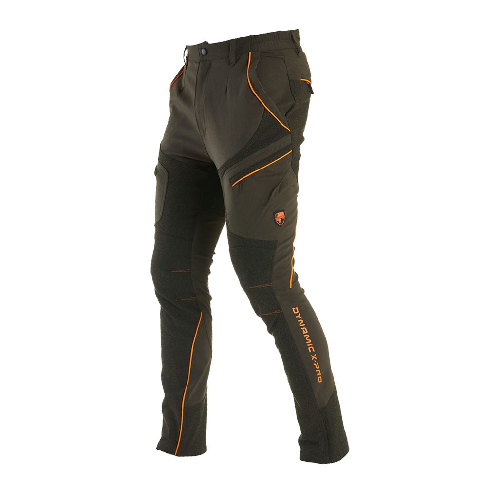 Pantalone da caccia ALPI dalla forma ergonomica in tessuto elasticizzato idrorepellente dotato di rinforzo in tessuto RK-TEX a contrasto nelle parti a maggiore usura, tasconi laterali, tasche posteriori, elastico ai fianchi. Taglie 46 – 64